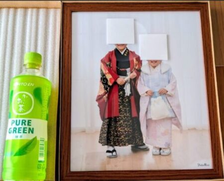 こちらは株主優待券で選択した四切フレームです。500ミリペットボトルより大きいサイズが無料!