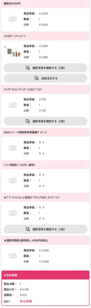 撮影料4,290円が無料になったおかげで、実際に支払ったのは約4,600円だけ!