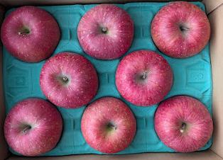 段ボールにはりんごに関する注意書きのシールが貼ってありました。