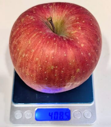届いたりんごは本当に大きいけれど、大きさがなかなか伝わらないので、重さを図ってみました!