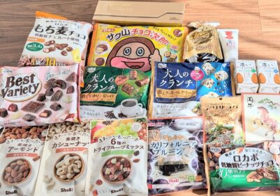 我が家では、妻の私はチョコレート系のものを、子どもにはフルーツ系・キャラもの(しまじろう・チョコ次郎)、ナッツ系は夫がメインで摂取する流れができています^^