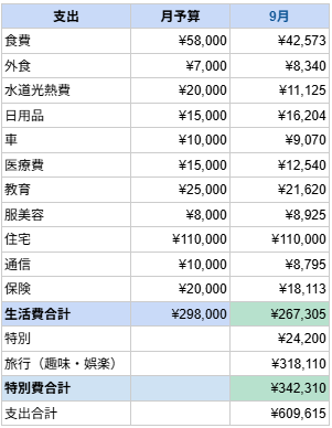 9月の家計簿を締めましたので、さっそく振り返っていきます(^^)