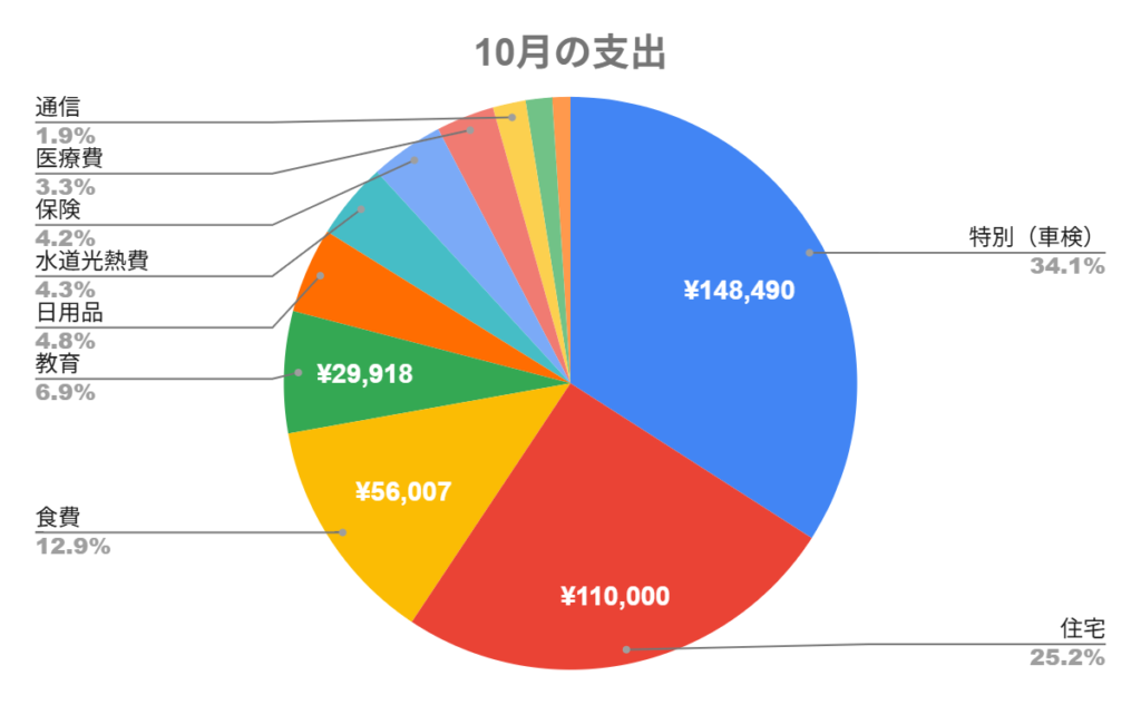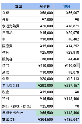 9月に旅行にいったことや、11月は我が家のイベント月(誕生日)のため、10月は控えめに抑えるように意識していました。